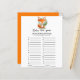 Fox cub Baby Item Game. Baby shower game