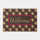 Deze vos welkomstmat ontwerp heeft schattige vossen met een strik, tweekleurige cirkels en roze sterren op een bruine achtergrond.