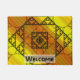 Drie stijlen van met de hand getekende fractals, met inbegrip van Sierpinski-driehoeken, Apollonian-pakkingen, en een vergelijkbaar vierkant ontwerp, vormen de lagen van dit geometrische mandala, bedekt met een helder geel en oranje verloop.