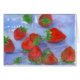 Une jolie carte blanche ornée de fraises rouges mûres sur un arrière - plan de lavande à perches peint en aquarelle.