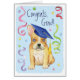 Confélicitlate your favorite graduate with a venft featuring a cute little French Bulldog graduate wearing a mortarboard amide a flurry of confeti.