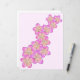 Met handgetekende roze en gele frangipani bloemen op een roze achtergrond.