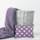 Een accuskussens met een polka puntpatroon van witte mini harten op een Franse lila achtergrond.