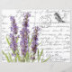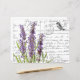 Het handgeschreven schrift van een oud Frans briefkaart wordt gecombineerd met Franse lavenderillustraties en een handgetekende vogel voor dit boek van de soort scrapbook of ontledingspapier.