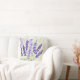 Een kussen met een lavenschilderij.