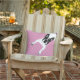 Nevil, Franse Bulldog, op een bijpassend met leliepatroon gedecoreerd decoratief kussen.