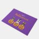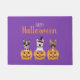 Illustratie van drie puppies van Bulldog van verschillende kleuren in pompoenen, gekleed in de Halloween-fabriek.