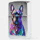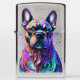 Helderkleurige Franse bulldog kop, die verf druipt en ronddraait.