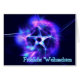 Een paars en blauw fractaal afbeelding van een vijfpuntige ster in een omringende kleur; allemaal op een donkere achtergrond. De Duitse tekst "Fröhliche Weihnachten" staat in blauw en wit gloeiend.