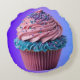 Gewoon een enorme, vanille cupcake met roze en blauw en paarse vorst, en strooit, op een paarse tot blauwe gradiënt achtergrond, op een kussen!
