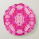 Rond kussen in een stropdas kleurpatroon in tinten van diep fuchsia roze, orchidee en pastel roze, geaccentueerd met zacht violet