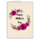 Een gelukkig wenskaart van het Moederdag met uw gepersonaliseerde bericht binnen. Ontworpen met fuchsia roze poppies en decoratieve sprigs en bladeren in een ronde, bloesachtige mond. Gelukkig Moederdag, geschreven in een schattig trendy lettertype. en elegant.
