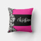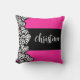 Fuchsia roze zwart wit zebra patroon hart naam kussen