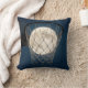 A full moon seems trapped in a basketball hoop, its netting stretched against a starry night sky, creating a surreal and captivating scene