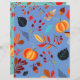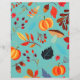 Fun motif de récolte d'automne avec citrouilles, champignons et feuilles colorés tourbillonnant autour.