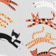 Veel leuke poesjes springen rond op een bleke neutraal grijze achtergrond. Originele kunst van Nic Squirrell. Fris en leuk, ideaal voor een kinderkamer of kind kamer, of voor overal waar dierenvrienden gaan!