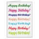 Deze verjaardagskaart is voorzien van een leuk, kleurrijk, typografisch ontwerp met de warme wens "Happy Birthday"! in verschillende stijlen en kleuren. Het bericht aan de binnenkant kan worden aangepast.