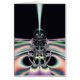 Helder en funky origineel fractal design, abstracte kunst, kleurrijke vogel op zwarte achtergrond