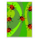 Drôle dessin animé rouge ladybugs se baladant contre un design arrière - plan tourbillonnant vert rétro.