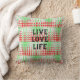 Funky Retro Green, Red, Pattern, Flowers, Kussen