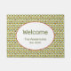 Pas de tekst eenvoudig aan op deze welkome mat. Het ontwerp is voorzien van een retro-stijlpatroon in olijfgroen met korrelachtige langwerpige vormen die met tussenpozen langs rechte verticale lijnen worden ingesteld. Elke kleur kan in deze speciale afbeelding worden bewerkt voor een aangepaste weergave.