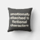 Emotioneel bevestigd aan Fictional Characters! Eenvoudig en stijlvol kussen met een leuk (en grappig) citaat voor boekliefhebbers in zwart-wit.