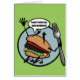 Drôle cheeseburger illustration carte de voeux verticale. Les couleurs avant et intérieure peuvent être customisées.