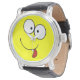 Grappig klokgezicht ... helder geel gezicht ... leuk en kleurrijk poethorloge uit Ricaso