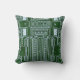 Grappig werpkussen met eigentijdse groene printplaat en wit elektronisch circuitpatroon. , elegant en funky hipster ontwerp voor de technologie nerd of geek, wetenschapsleraar of ingenieur, moderne technologie liefhebber, artistieke interieur designer, artsy populaire hip trendsetter, mod retro, modernist, nouveau deco art stijl of abstracte geometrische motief liefhebber.