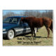 Een komische foto van Morgan Mare die haar hoofd in de auto steekt en zich afvraagt wat de paardenkracht is. Geweldig cadeauidee voor autofanatici en paardenliefhebbers.
