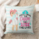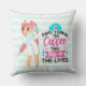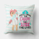 Een kussen met een humoristisch gezegde: eerst drink ik de koffie, dan redt ik de levens. Ideaal voor verpleegkundigen. Een afbeelding van een verpleegkundige die een schattig ouderwetse verpleegkundige pet draagt en een gigantische hypodermische naald draagt.