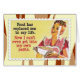 Een grappige retro-kaart met een kookvrouw.
