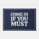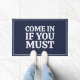 Een grappige, sarcastische humor citeert "Kom binnen als je moet", een slaapzool in een elegant blauw van de marine. Als je bekend staat om je humor zou dit hormoon een ideale keuze maken.