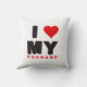 Grappig kussen met 3d tekst "I Love My Husband". Zwarte letters, rood hart op witte achtergrond. Je kunt de tekst vervangen door een vriendje of een vriendin