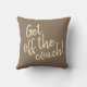 De tekst op deze sofa kussen, "Stap uit de bank!" zou kunnen zijn voor de afgevende hond, of voor het familielid dat hard oefening nodig heeft.