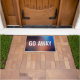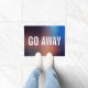 Grappig niet-bijzonder-welsprekend doormat met GO AWAY, geschreven in grote vette witte letters over bruin en blauw.