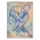 Gabriel, avec les cheveux foncés courts et les grandes ailes bleues, tient une épée dans une position de combat, vêtements modernes de port de ville, flocons de neige dérivant vers le bas autour de elle dans une scène urbaine d'hiver, avec une grande ville dans la distance. La grande lune est derrière elle. Swils de gris bleu et chaud dominent la peinture. L'aquarelle et l'encre parquent la peinture sur le papier chaud d'aquarelle de presse, de ma série d'archange, qui inclut Gabriel, St Michael, Raphael, et Uriel.