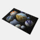 Schitterend ontworpen fractale planeten omringd door sterren die in de ruimte zijn opgehangen, in hoofdkleuren van goud en blauw.
