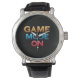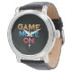 Het ontwerp is voorzien van de uitdrukking "Game Mode On" in een vet, schreefloos lettertype, weergegeven in een levendig palet van elegante kleuren. De woorden zijn gerangschikt in een dynamische, diagonale compositie, waardoor een gevoel van energie en opwinding wordt gecreëerd.