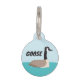 Dit afbeelding shows een huisdier ID label met een grillige ganzenillustratie. De gans is afgebeeld in een eenvoudige maar charmante stijl, met zijn kenmerkende zwarte kop en hals, witte wangvlekken en bruine lichaam — kenmerken van een Canadese gans. De achtergrond is een kalmerende blauwtint, die doet denken aan een heldere hemel of misschien een rustig waterlichaam waar ganzen kunnen worden gevonden. De naam van uw huisdier is vet gedrukt in een speels, donker lettertype, dat opvalt tegen de lichtere achtergrond, waardoor de naam gemakkelijk kan worden gelezen. Dit label zou een heerlijke keuze zijn voor een huisdier met de naam Goose of voor huisdiereigenaren die een affiniteit hebben met watervogels of een vleugje humor genieten bij het benoemen van hun huisdieren.