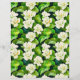 Papier dans un motif de fleurs de gardenia blanche dans contre un arrière - plan de feuilles vert jade foncé