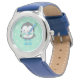 Personnalisez cette jolie montre comme cadeau de Noël pour les enfants ! Il est livré avec un mignon petit pingouin qui essaie de garder chaud avec un foulard à rayures vertes et une paire de patins à glace bleue au lieu de glisser sur son ventre comme d'autres pingouins. La couleur de l'arrière - plan de la monnaie peut être modifiée.