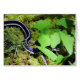 Een tuinslang snake pinda's van zijn schuilplaats op een mos-bekleed log in het bos.