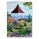 Gazebo, bloemen, oceaan, bunny, blanco kaart