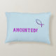 Licht blauw accent kussen met "Geanodiseerd"! en geïllustreerd afbeelding van vis. De paarse kleur symboliseert de royalty, dus geanoineerd. De vis of de ichthys is het geheime symbool dat vroege christenen gebruiken om elkaar te identificeren en zich te verzamelen zonder vervolging.