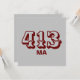 Code gebied 413, met onderhoud van Agawam, Chicopee, Holyoke, Northampton, Pittsfield, Springfield, West Springfield of een willekeurige plek in West Massachusetts. Gebiedscode 413 (gemaakt in 1947) is de gebiedscode voor het westerne derde deel van Massachusetts. Het is de grootste gebiedscode per landgebied in het Gemenebest en strekt zich uit van de lijn van de staat New York naar het oosten van het district Worcester (alleen de steden Hardwick en Warren), met uitzondering van de Franklin County cities van Oranje, New Salem, Warwick en Wendell, die gebruik maken van de bedekking van de gebiedscodes 978 en 351. De dichtstbevolkte stad in de 413 gebiedscode is Springfield. 413 omvat ook Chicopee, Northampton, Holyoke, Greenfield en Amherst.