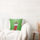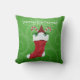 Dit kussen heeft een bebaarde kabouter in een rode en witte vacht afgesneden kerstkous met holle planten en snoepstokken op een groene achtergrond met lichtgroene wervelingen. Pas jouw tekst aan met de sjabloon.