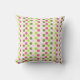 Deze kussen voorzien van een polka stip met roze en olijfgroen op een lichtgele achtergrond.