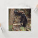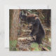 Het schilderen van een zwarte beer kubus die tegen een boom leunt terwijl hij op een mos bedekte stump staat en een bloem bereikt.