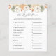 Baby shower spelkaart voor gasten om de prijs van de baby items te raden.